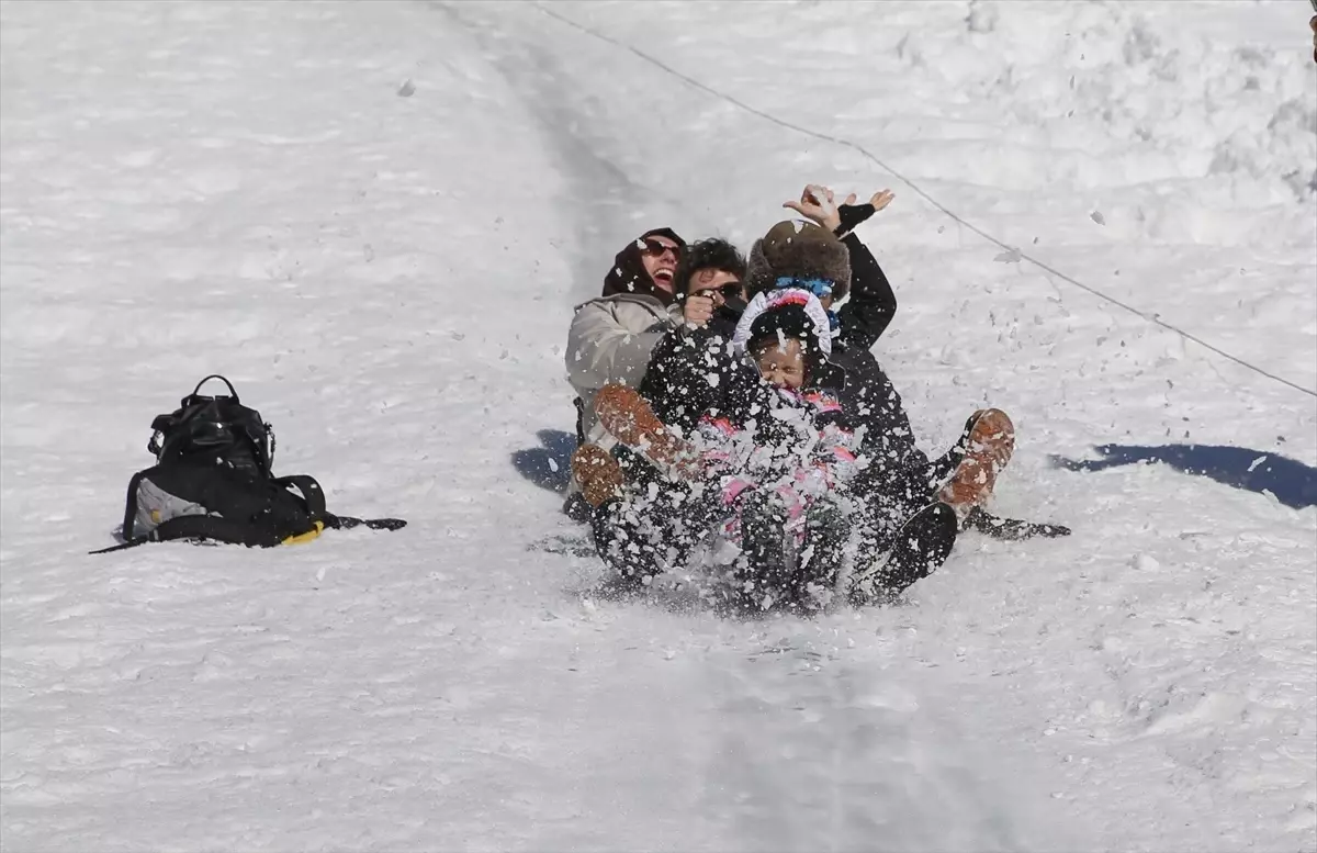 Katılımcılardan bazıları kar üstünde horon oynadı, bazıları ise naylonla kaymaya çalıştı.